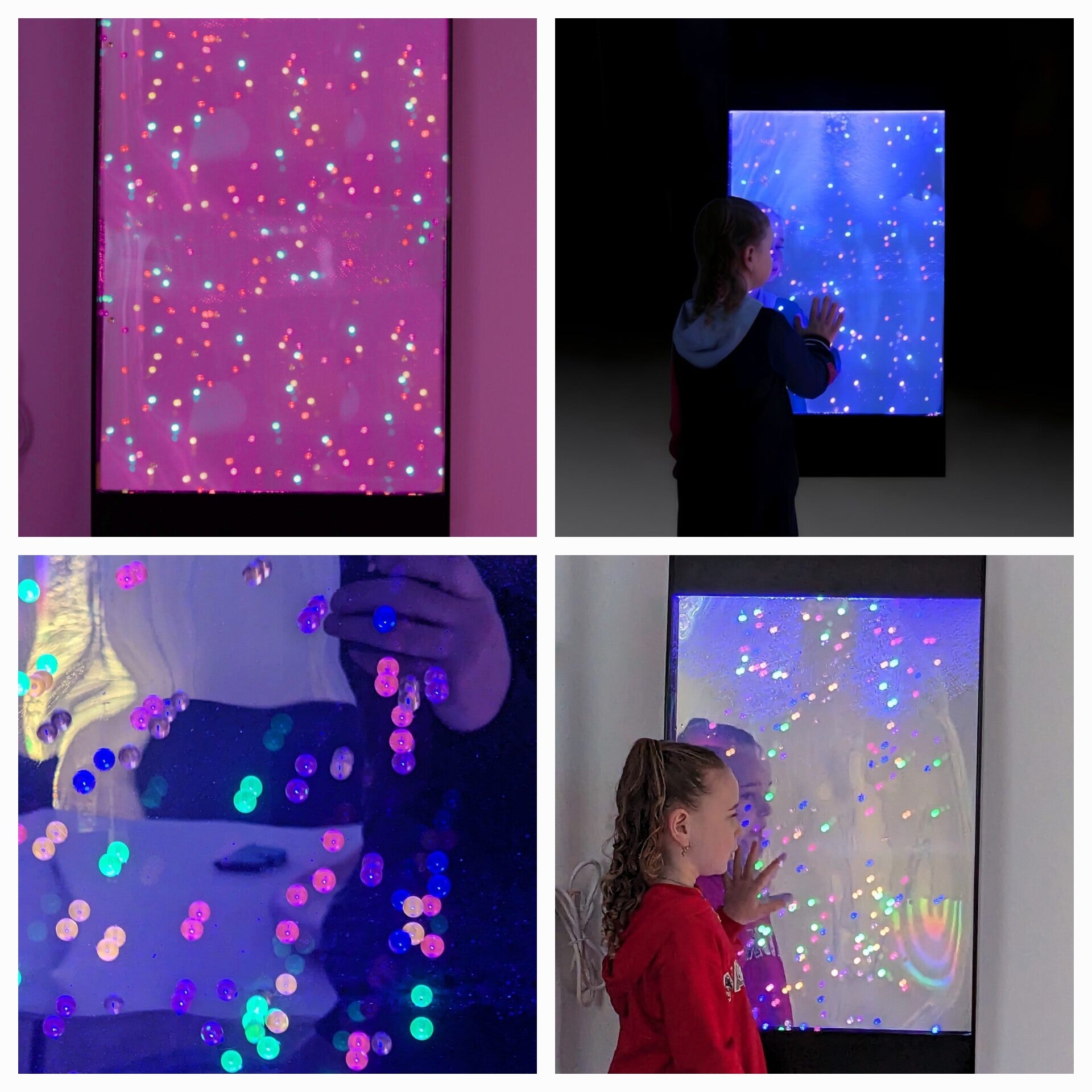 A colour changing wall with luminous beads that gently float down the wall to create a magical relaxing experience. Includes remote .