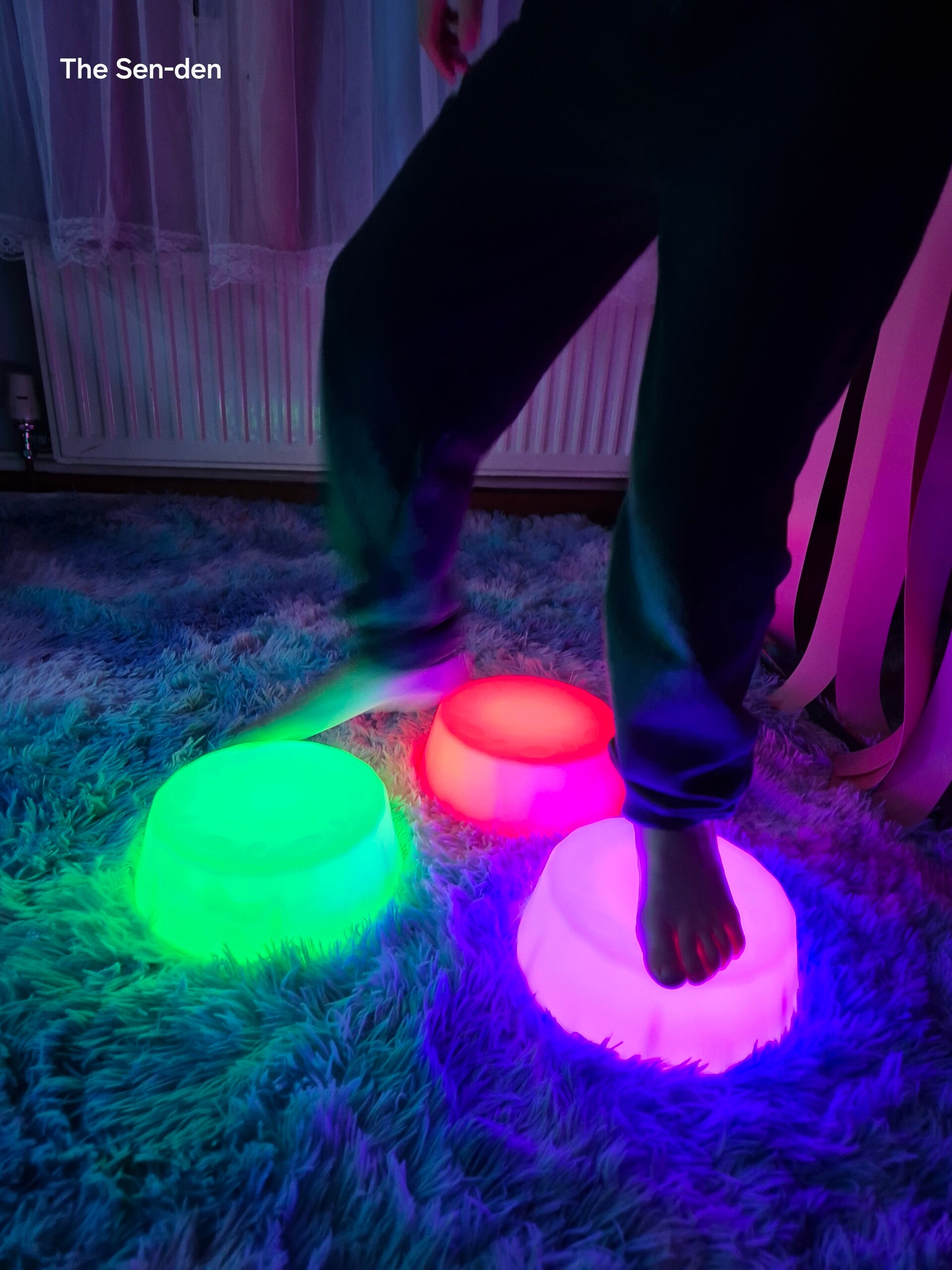Bring movement, colour, and sensory excitement to any setting with our Set of 3 Light-Up Sensory Floor Pods. Each robust pod features a textured top for added tactile feedback and an anti-slip backing to keep it securely in place during play. When stepped on, pressed, or moved across, the pods burst into vibrant colours, encouraging exploration, interaction, and active movement.